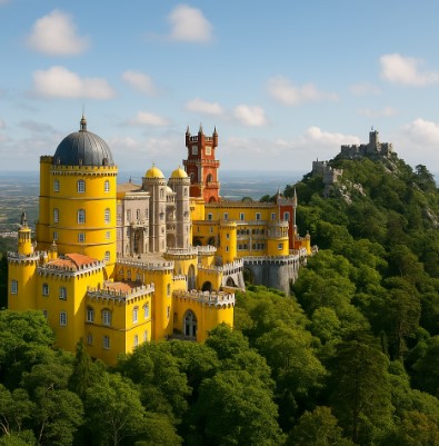 페나 궁전은 19세기 낭만주의 건축의 대표 사례로, 고딕, 르네상스, 이슬람 양식이 융합된 독특한 외관을 가지고 있으며, 다채로운 색채와 풍부한 장식으로 많은 관광객을 끌어들이고 있습니다. 고지대에 자리한 이 궁전은 신트라 시내를 한눈에 조망할 수 있는 탁월한 위치에 있어 방문자들에게 시각적 감동을 선사합니다. 내부에는 포르투갈 왕실의 생활상이 고스란히 남아 있어, 건축 이상의 문화사적 의미를 지닙니다.