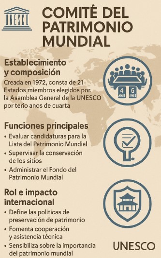 유네스코 세계유산위원회(World Heritage Committee)는 1972년 제정된 ‘세계문화 및 자연유산 보호협약’(Convention Concerning the Protection of the World Cultural and Natural Heritage)에 따라 설립된 공식 기구입니다. 이 협약은 인류 전체가 공유하고 보호해야 할 가치가 있는 문화유산과 자연유산을 국제적으로 인정하고, 보존하는 것을 목표로 하며, 세계유산위원회는 그 핵심 운영기구로 기능합니다.